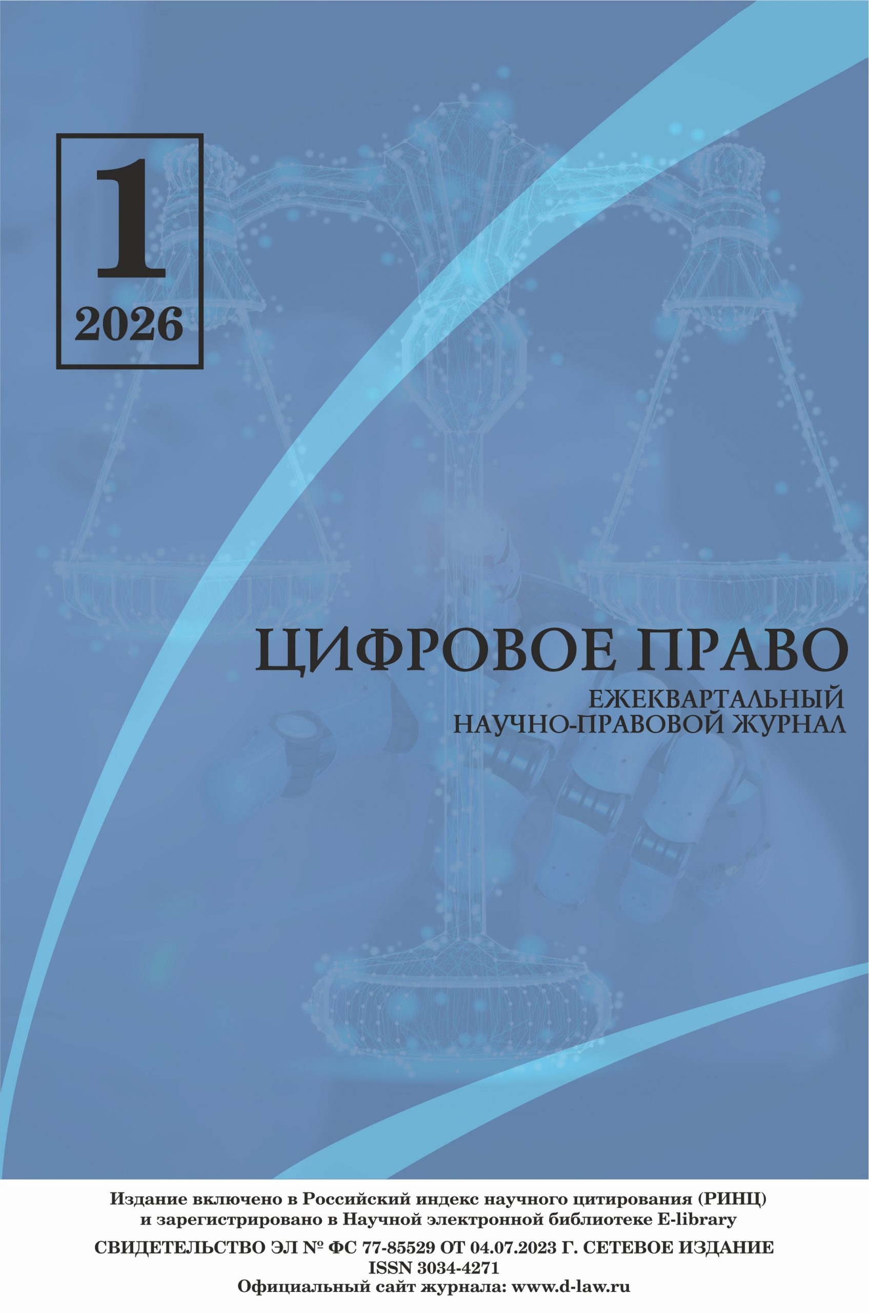 Ежеквартальный журнал, посвященный теоретическим и практическим вопросам цифровизации права, использованию ИИ в правоприменительной деятельности, цифровизации правосудия, изучению влияния цифровых технологий на развитие современного права, а также перспективам развития правового регулирования в условиях цифровизации.